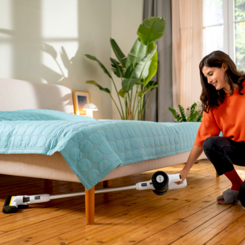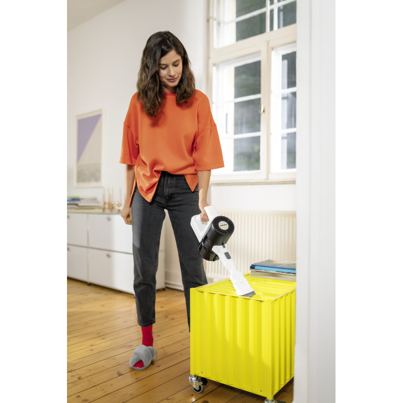 Акумуляторний пилосос Karcher KVA 2 — це легкий, маневрений і тихий прилад для комфортного прибирання будь-яких підлогових покриттів. Оснащений трьома режимами роботи, поворотним шарніром на 180° та ефективною HEPA-фільтрацією, що затримує до 99,9% частинок. Підходить для алергіків. Заряджається через USB-C та забезпечує високу ефективність навіть під час прибирання у важкодоступних місцях.