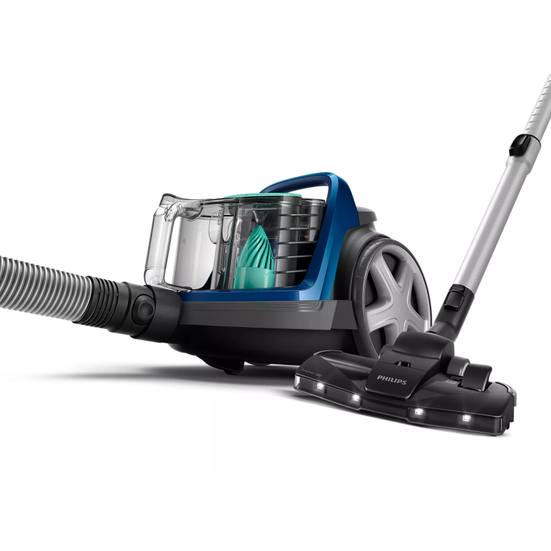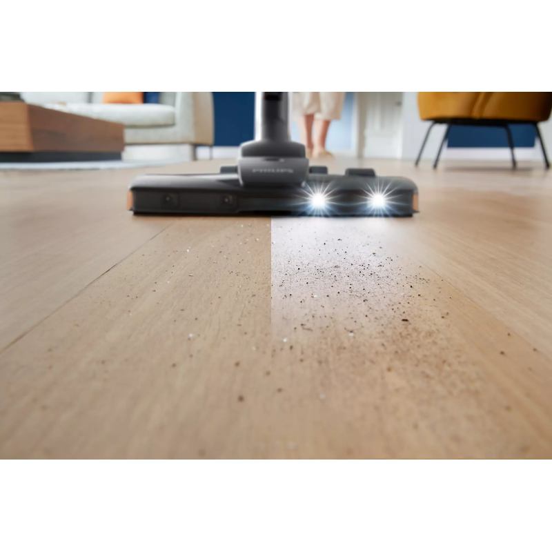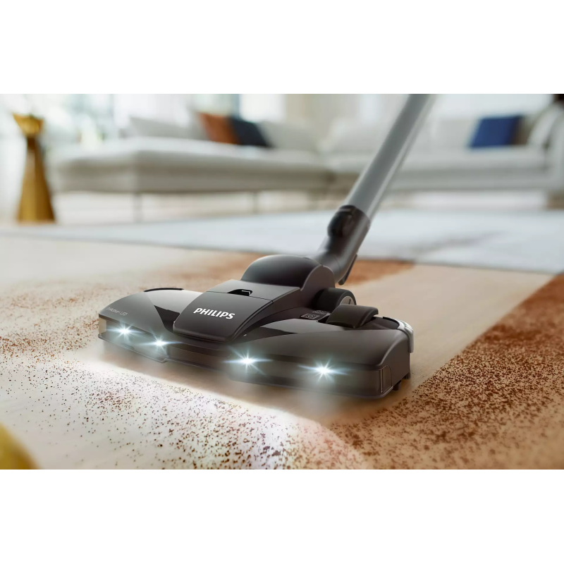 Безмішковий пилосос Philips серії 5000 дозволяє досягати максимально ретельних результатів прибирання з мінімальними зусиллями завдяки технології PowerCyclone 7 і світлодіодній насадці TriActive+, яка виконує одночасно три оптимізовані функції очищення.