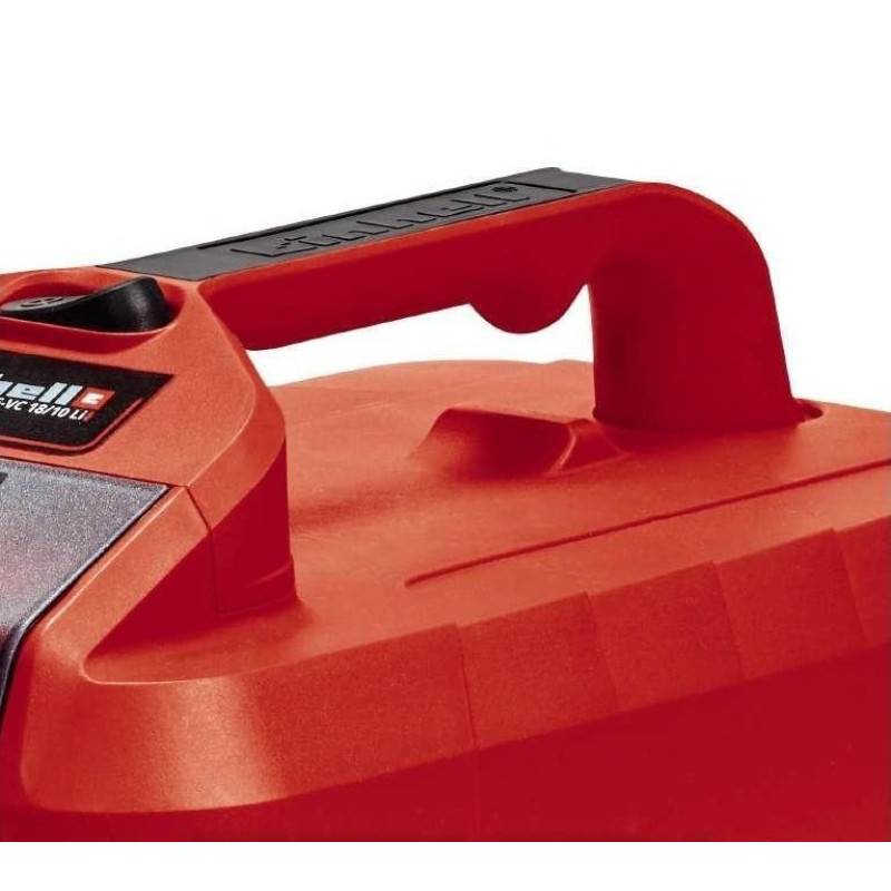 Пилосос Einhell TE-VC 18/10 Li - Solo аккум., (без АКБ та ЗП.), 10 л 2347160. Пилосос будівельний акумуляторний Einhell TE-VC 18/10 Li-Solo є представником сімейства Power X-Change, тому він може прибрати бруд у будь-якому, навіть важкодоступному місці, тому що для роботи немає необхідності в розетці. Пилосос комфортний у роботі завдяки ергономічному дизайну, зручному розташуванню кнопки включення та ручки для перенесення, тихому двигуну. 10-літровий пластиковий бак дозволяє виконувати прибирання великого, дрібного, сухого чи вологого сміття.