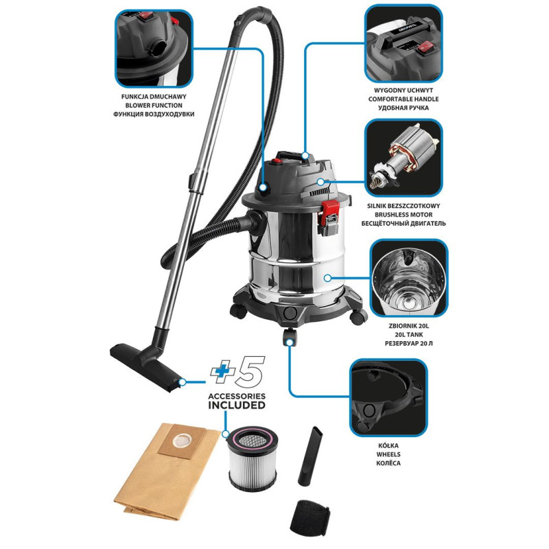 Акумуляторний пилосос для вологого та сухого прибирання GRAPHITE 58GE124 є частиною серії інструментів Energy+, що працюють від 18В Li-Ion акумуляторів. Цей універсальний пристрій призначений для прибирання як сухого сміття, так і рідин, забезпечуючи ефективну роботу в різних умовах.