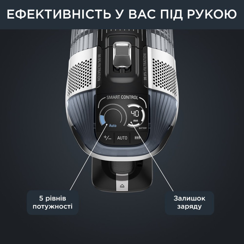 Бездротовий пилосос Rowenta XForce Flex 14.60 поєднує в собі високу ефективність прибирання з найкращим у своєму класі досвідом. Нові технології Rowenta - двигун DigitalForce з потужністю всмоктування до 200 повітряних Ватт і виняткова батарея, що забезпечує час роботи тривалістю до 1 години і 10 хвилин - поєднуються з високотехнологічними інноваціями: автоматичне регулювання потужності всмоктування в залежності від типу підлоги, дисплей, технологія Flex для надзвичайно низького доступу під меблями, не нахиляючись.
