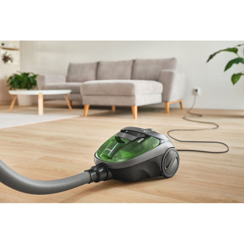 Циклонна фільтрація забезпечує постійну потужність всмоктування протягом усього процесу прибирання, а завдяки ефективним фільтрам – ідеальну фільтрацію та ефективне вловлювання навіть найдрібніших частинок пилу. Тому пилосос підходить для алергіків і людей з підвищеною чутливістю до пилу. Технологія без мішка для прибирання пилу береже ваш гаманець і навколишнє середовище. Пилозбірник об'ємом 1,5 л повністю миється та легко підтримується в гігієнічній чистоті.