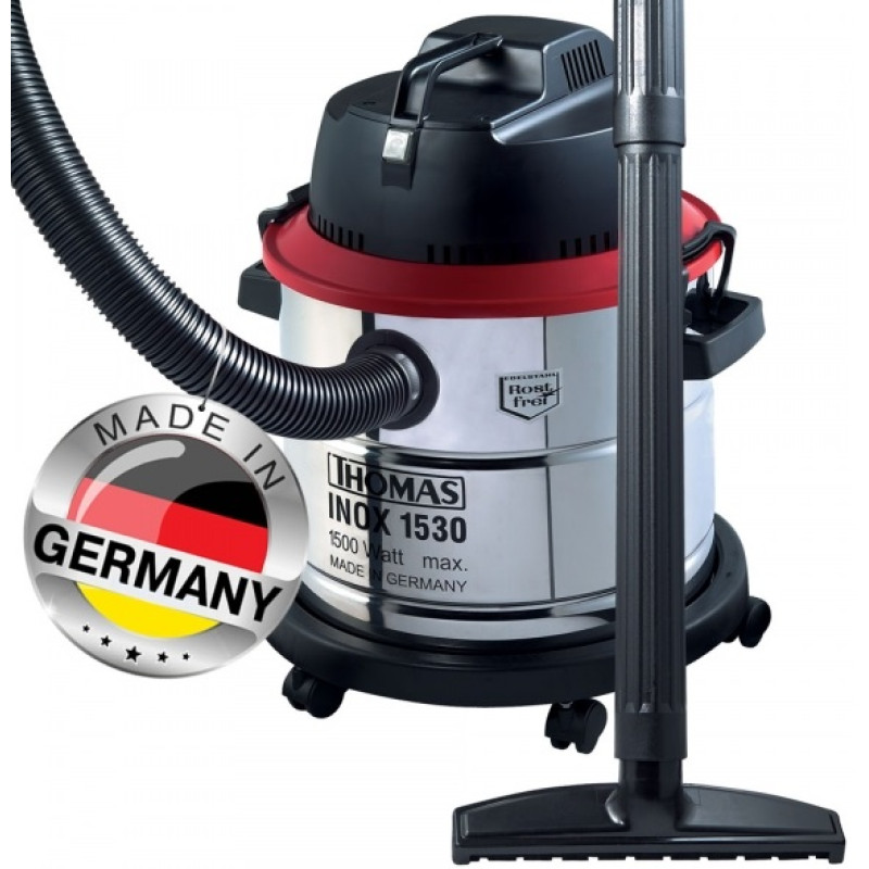 Пилосос з резервуаром з високоміцної нержавіючої сталі об'ємом 30 літрів. Сухе прибирання та збір рідкого сміття, збір грубого сміття, відходів від роботи електроінструментами. З протиударним бампером.
