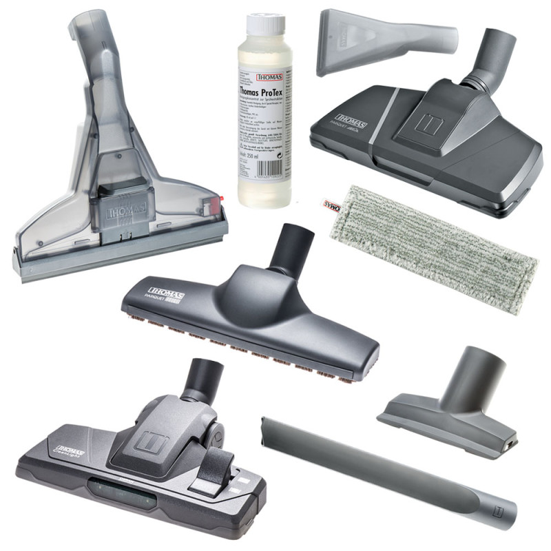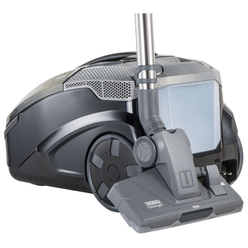 Справжній німецький Паркетник. Завдяки унікальним насадкам і системі Thomas AQUA-BOX процес прибирання простий і приємний. Делікатне, ретельне миття паркету, ламіната, килимів, плитки, м'яких меблів. Зручний і міцний кордовий шланг з пультом дистанційного керування, розташованим прямо на рукоятці. Насадка з автоматичним світлодіодним підсвічуванням для темних місць Thomas CleanLight.