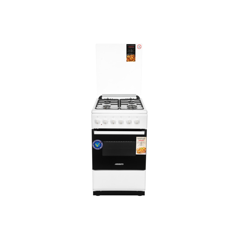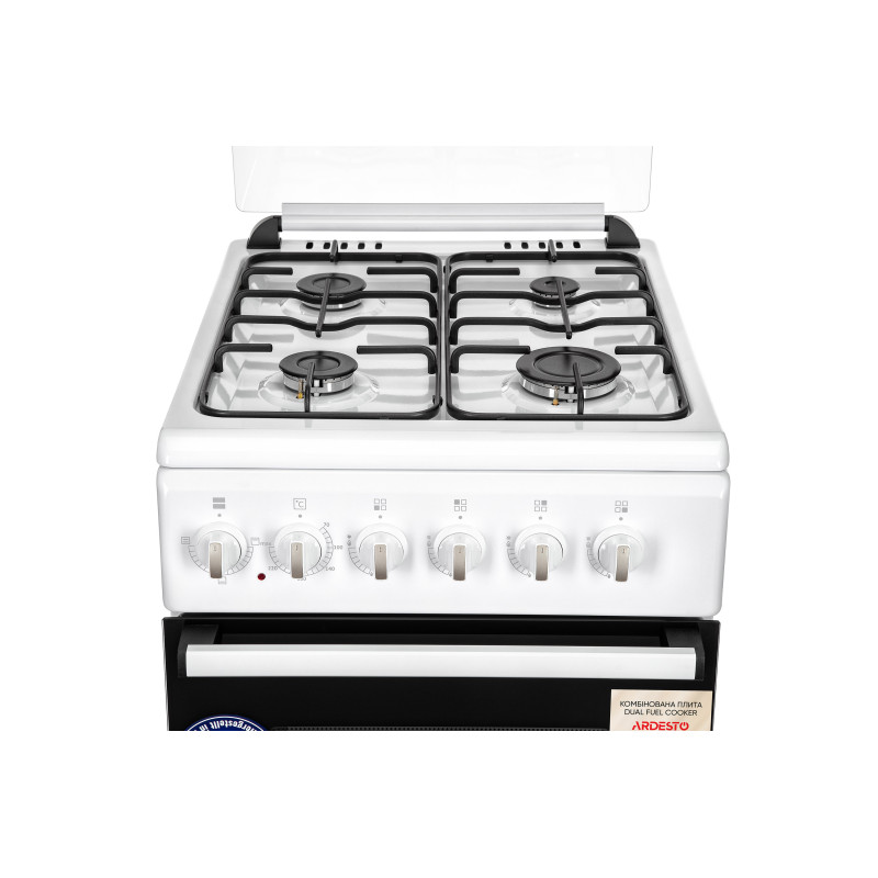 Комбінована плита ARDESTO FSC-F5060MW білого кольору на 4 газові конфорки поєднує функціональність і мінімалістський зовнішній вигляд. Кришку виготовлено зі скла. Додатково в комплекті наявні форсунки для скрапленого газу LPG. Клас захисту I. Решітка матова емальована. Запалювання автоматичне, в ручці. Передбачено газ-контроль. Об’єм духової шафи з підсвічуванням 52 л. Клас енергоефективності камери духової шафи А. Має містке висувне відділення для зберігання сковорідок і форм для запікання. Розмір (в × ш × г) 85 × 50 × 60 см. Вага 34 кг.