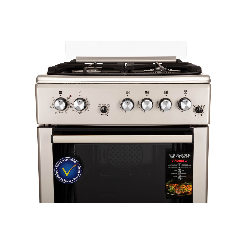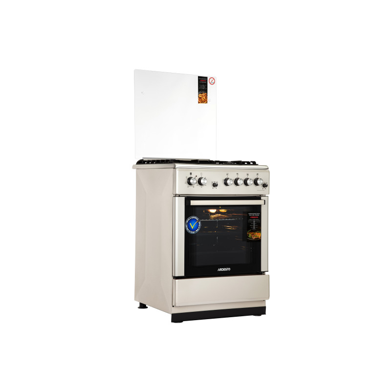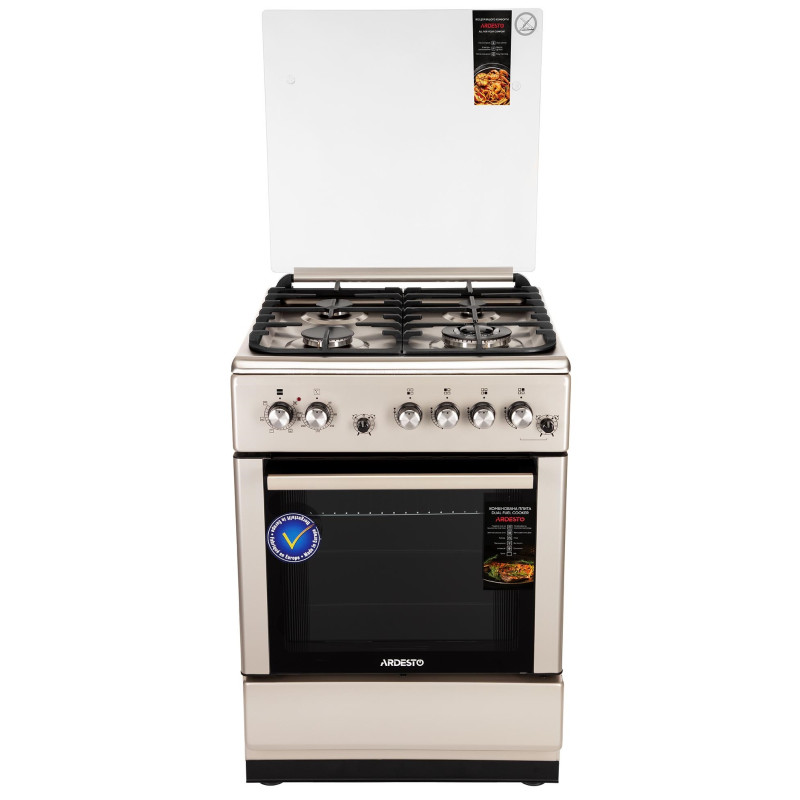 Комбінована плита ARDESTO FSC-F6060PS кольору сірий металік із чотирма газовими конфорками та емальованим покриттям. Додатково в комплекті форсунки для скрапленого газу LPG. Пристрій має два пальники: смарт-пальник і WOK-конфорку. Решітка з міцного матеріалу – чавуна, кришка зі скла. Запалювання автоматичне, в ручці. Безпечне використання – газ-контроль. Електрична духова шафа з підсвічуванням. Клас енергоефективності камери духової шафи А. Оснащена подвійним знімним склом Cool Door. Об’єм – 64 л. Духова шафа з функцією конвекції та грилю. У комплекті постачання решітка та два дека – звичайне та глибоке. Наявне відділення для зберігання посуду, висувне. Розмір (в × ш × г) 85 × 60 × 60 см. Вага 40 кг. Комбінована плита ARDESTO FSC-F6060PS – практичне та безпечне рішення для родин, де полюбляють готувати.
