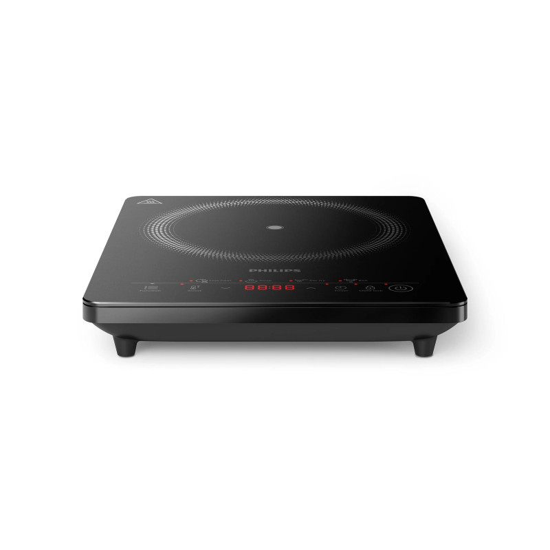 Настільна індукційна плитка Philips HD5830/90 потужністю 2000 Вт оснащена сенсорним керуванням та однією зоною нагріву діаметром 208 мм. Плитка підтримує 8 рівнів потужності, функцію Boost та 4 попередньо встановлені програми приготування. Склокерамічна поверхня чорного кольору легко очищається, а таймер розрахований до 3 годин. Автоматичне визначення посуду та низьке споживання в режимі очікування роблять пристрій зручним для щоденного використання. Гарантія становить 2 роки.