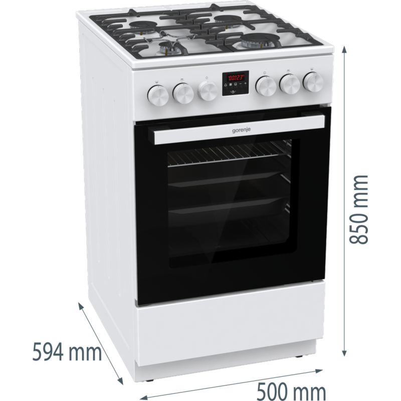 Тип плити: Газова Кількість конфорок: 4 шт Корисний об'єм духовки: 67 л Розмір (Ш х В х Г): 50 x 85 x 59.4 см