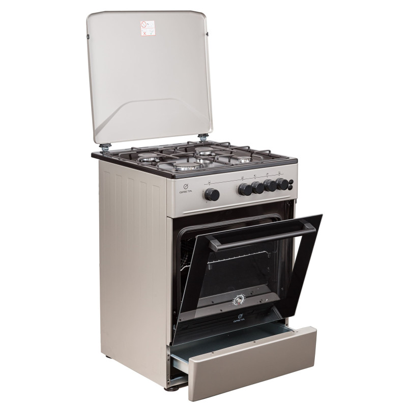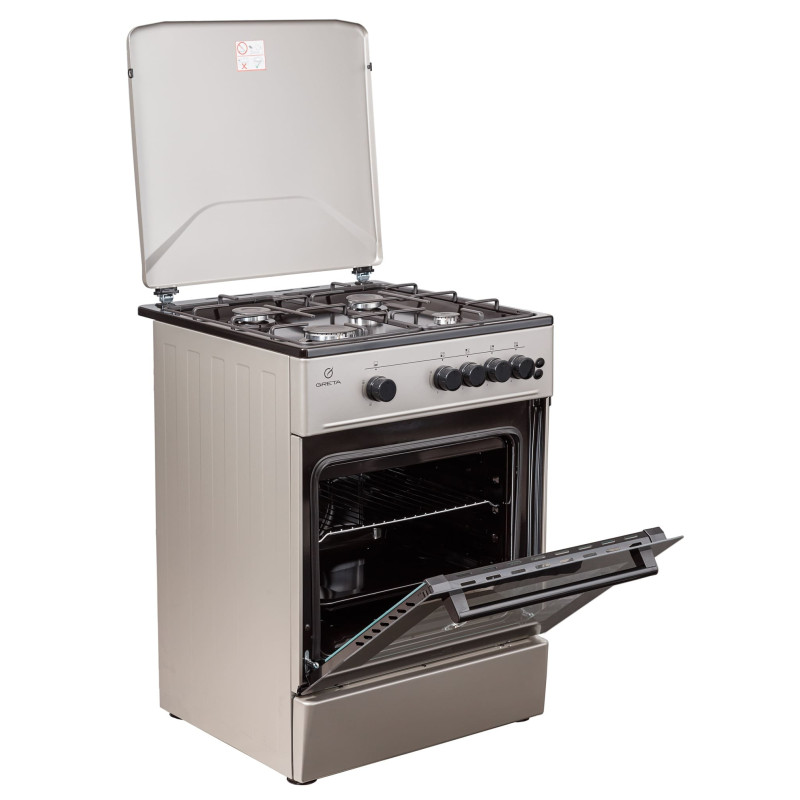 Тип плити: Газова Кількість конфорок: 4 шт Корисний об'єм духовки: 70 л Розмір (Ш х В х Г): 60 x 85 x 60 см