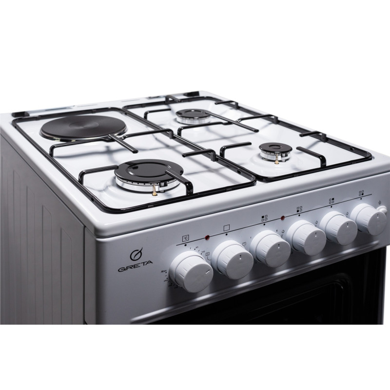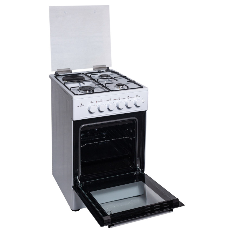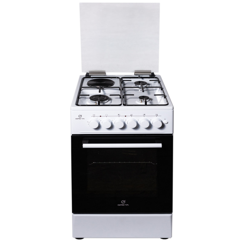 Тип плити: Комбінована Кількість конфорок: 4 шт Корисний об'єм духовки: 58 л Розмір (Ш х В х Г): 50 x 85 x 60 см