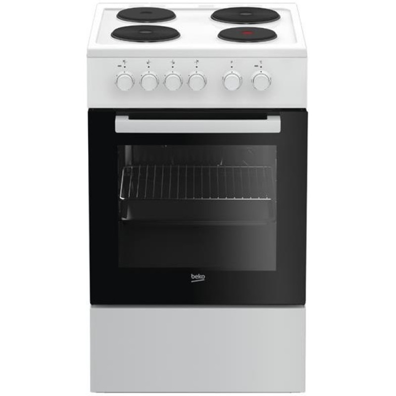 Beko FSS56000GW — надійна електрична плита з класичним дизайном і простим управлінням. Ідеально підходить для тих, хто шукає зручне рішення для щоденного готування. Модель має 4 електроконфорки, що забезпечують стабільне нагрівання, а також 60-літрову духовку, яка легко впорається з приготуванням основних страв — від запіканок до пирогів.