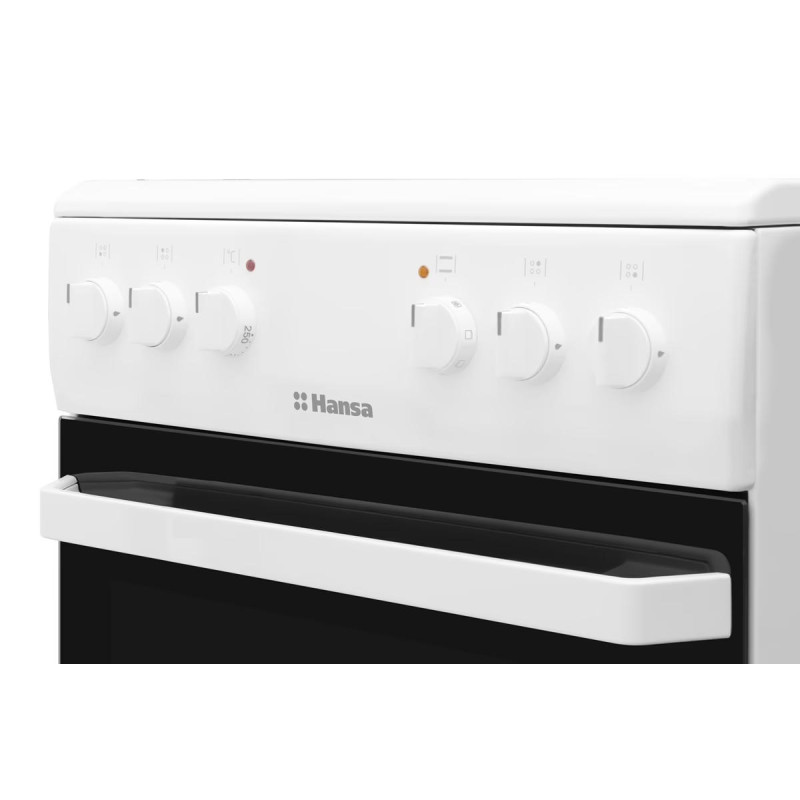 Електрична плита Hansa FCCW56069 має простору духовку об’ємом 62 л і чотири конфорки на склокерамічній поверхні. Шість режимів нагрівання дозволяють готувати з нижнім або верхнім нагрівом, у поєднанні з вентилятором чи в режимі розморожування. Максимальна температура досягає 250 °C, що робить плиту зручною для запікання, випікання та тушкування.