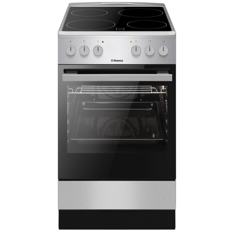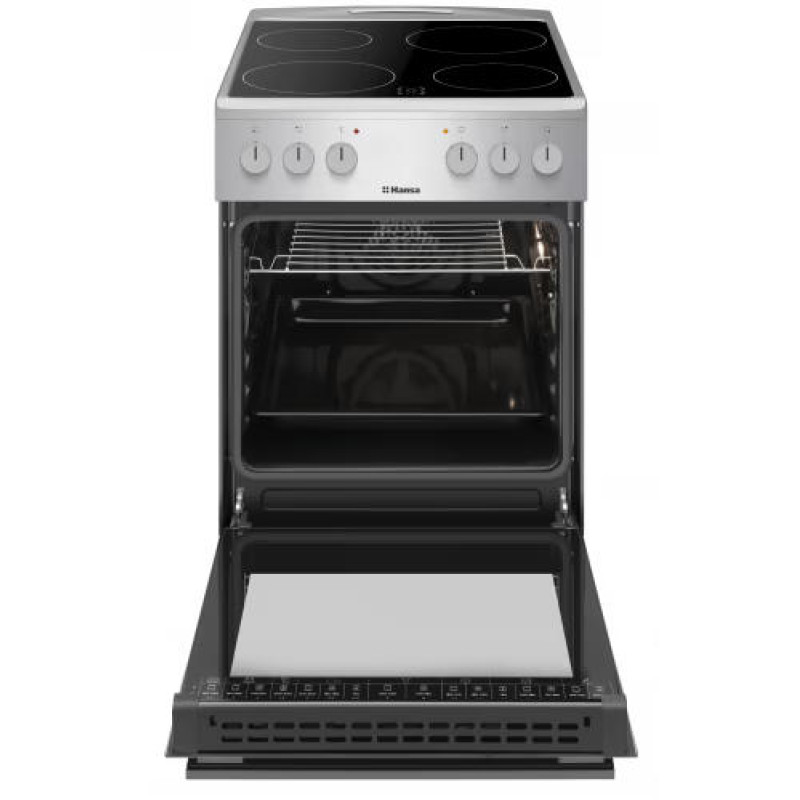 Електрична плита Hansa FCCX59009H з духовкою об’ємом 62 л та чотирма нагрівальними зонами стане практичним рішенням для щоденного приготування. Духовка підтримує кілька режимів нагріву, включаючи верхнє й нижнє нагрівання, функцію з вентилятором, гриль та розморожування. Максимальна температура становить 250 °C, а система очищення паром спрощує догляд.