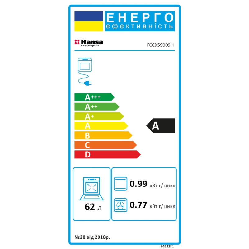 | Обсяг духовки | 62 л |