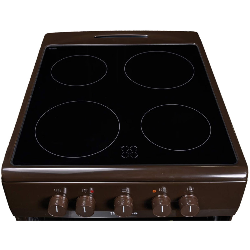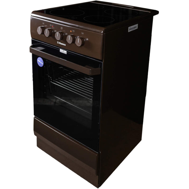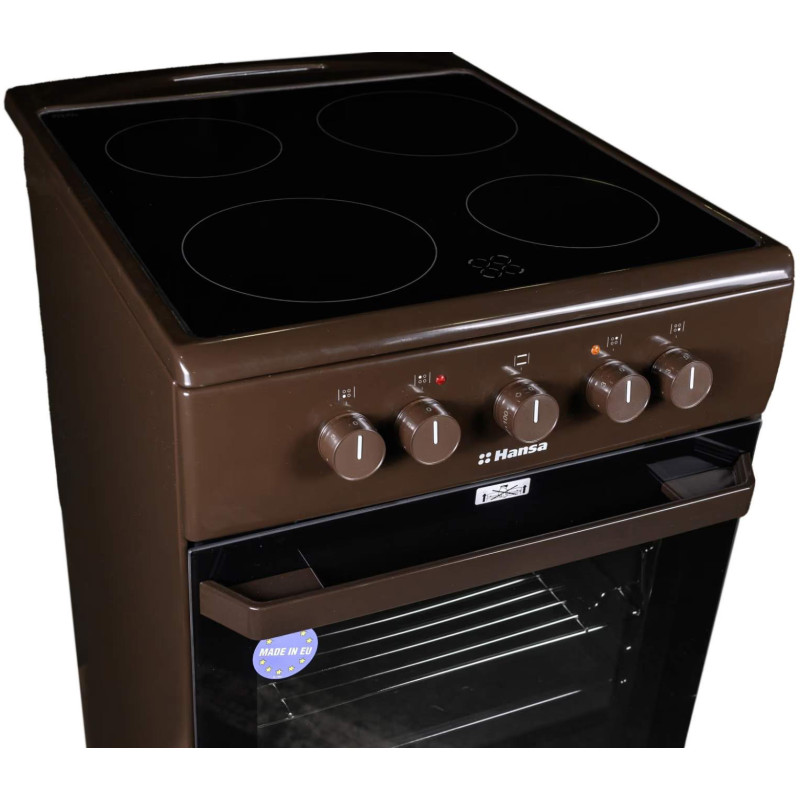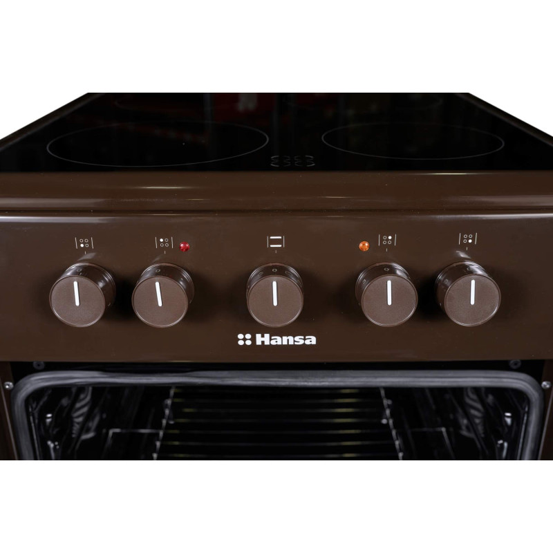 Електрична плита Hansa з духовкою на 68 л оснащена 4 режимами нагріву, включаючи верхній, нижній та гриль. Склокерамічна поверхня має 4 конфорки різної потужності з індикатором залишкового тепла. Коричневий корпус у поєднанні з паровим очищенням робить техніку практичною та зручною у догляді.