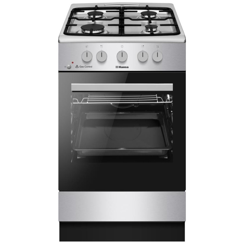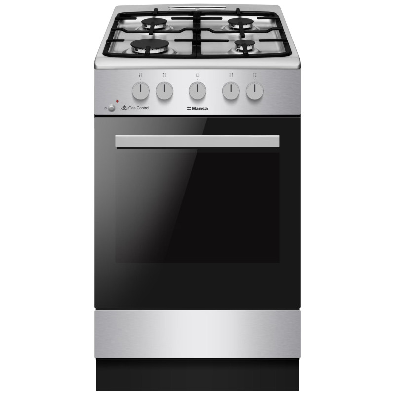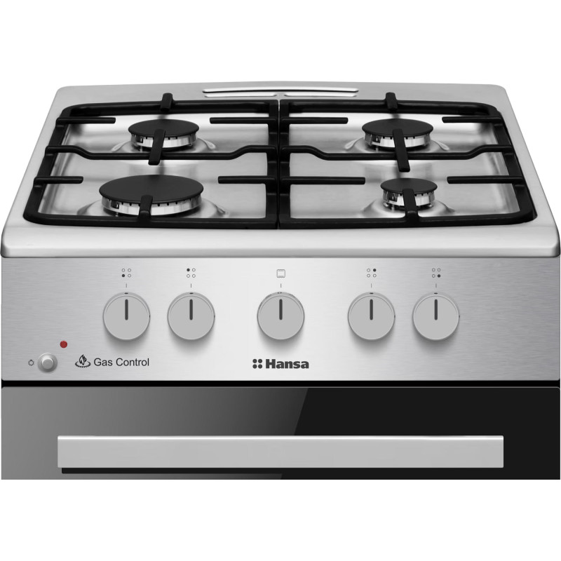 Газова плита Hansa FCGX52029H поєднує нержавіючий корпус, чавунні опори та духовку місткістю 67 л. Варильна поверхня з чотирма газовими зонами створює зручні умови для приготування різних страв. Духовка з грилем 2000 Вт та статичним нагріванням забезпечує рівномірне пропікання. Плаваюче скло та знімні дверцята сприяють легкому догляду. Галогенне освітлення гарантує чітку видимість у процесі випікання.