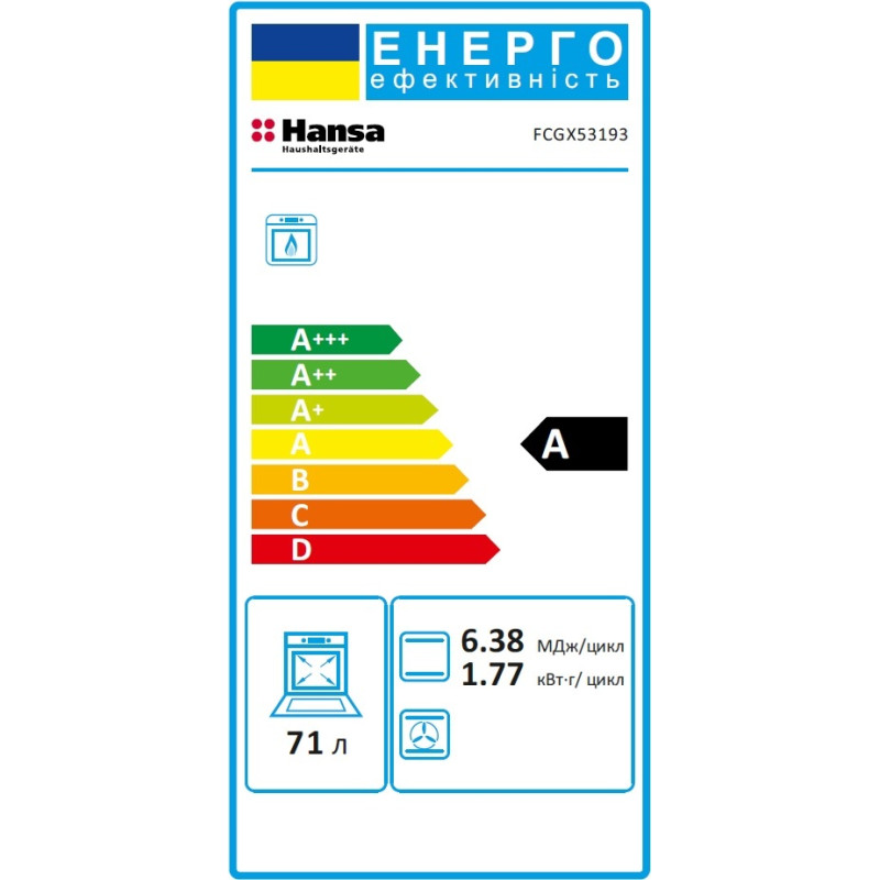 | Обсяг духовки | 71 л /(369 x 435 x 440 мм) |