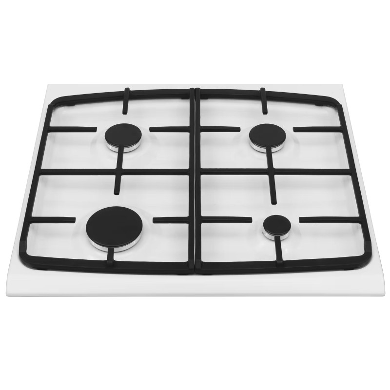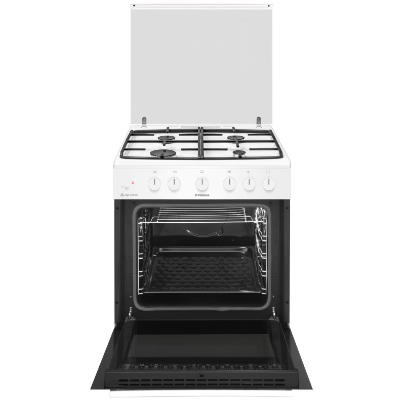 Газова плита Hansa FCGW63193 - це функціональна модель із 4 газовими конфорками та духовкою об'ємом 71 л з нижнім газовим нагрівом і грилем. Чавунні решітки забезпечують стабільність посуду, а автозапалювання в ручках робить користування зручним. Газ-контроль гарантує безпеку, автоматично припиняючи подачу газу при згасанні полум’я.