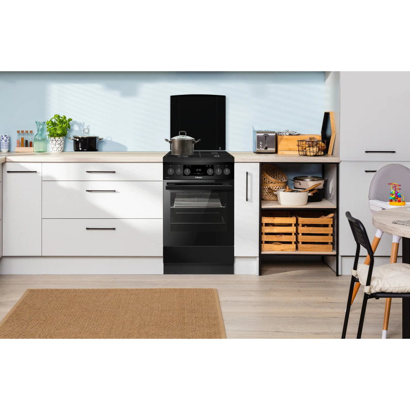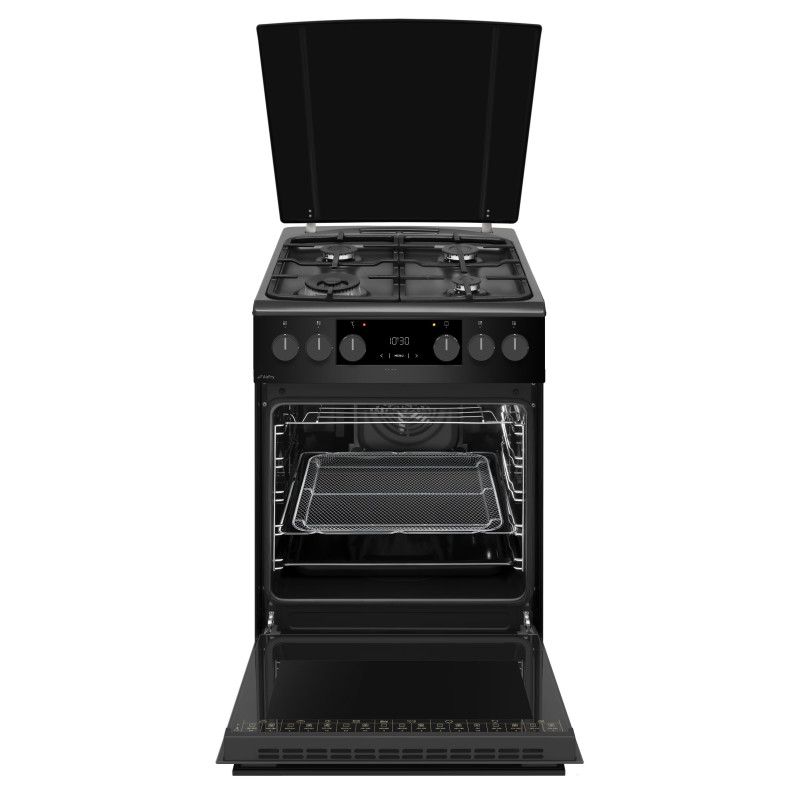 Hansa FCMM58329 – це сучасна комбінована плита у стильному чорному дизайні, яка поєднує функціональність і зручність. Газова варильна панель оснащена 4 конфорками, зокрема турбоконфоркою, автоматичним запалюванням та чавунними ґратами. Простора 65-літрова електрична духовка має 8 програм, конвекцію та електричний гриль для точного приготування страв. Каталітичне очищення спрощує догляд, а спеціальне деко AirFry дозволяє готувати без жиру.