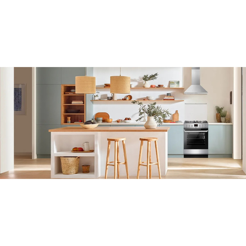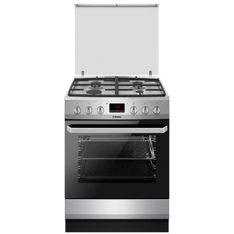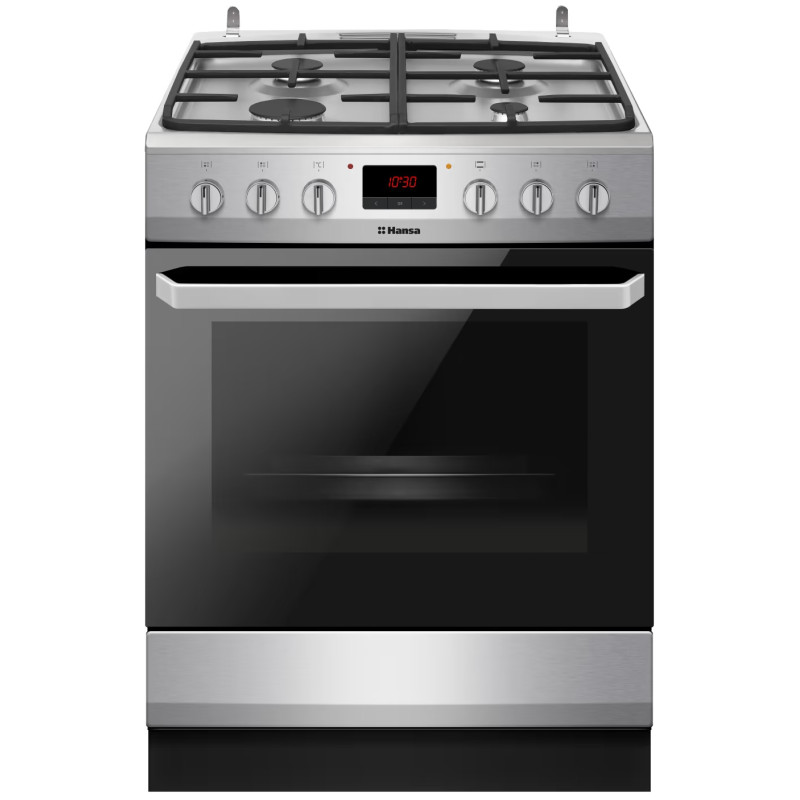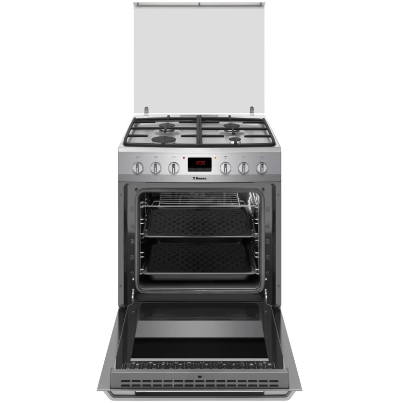 Hansa FCMX69235 – це сучасна комбінована плита з нержавіючої сталі, що поєднує стиль та високу продуктивність. Газова варильна панель оснащена чавунними ґратами, чотирма конфорками, зокрема потужною турбоконфоркою, автоматичним запалюванням та газ-контролем. Простора 65-літрова електрична духовка пропонує 8 програм, конвекцію та електричний гриль для різноманітних страв.