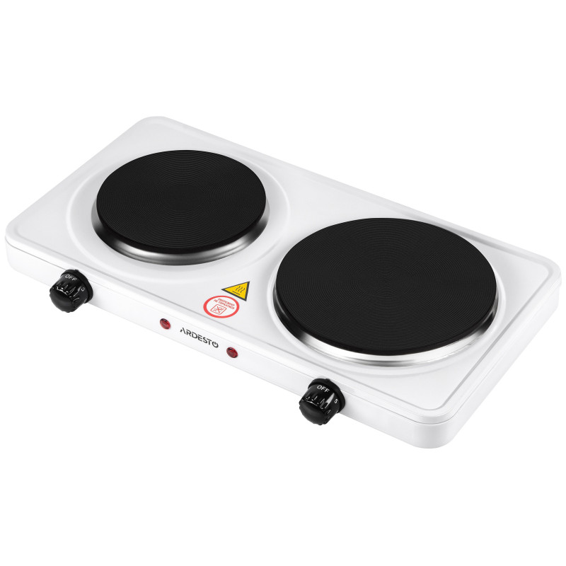 Електрична плита ECS-J225W білого кольору з двома конфорками діаметром 15,5 і 18,5 см й індикатором нагріву. Потужність однієї конфорки – 1 000 Вт, іншої – 1 500 Вт. Чудово підійде для приготування різноманітних страв вдома, на дачі, в гуртожитку, в умовах кемпінгу тощо. Є захист від перепадів напруги в електромережі й регулятор температури має п’ять положень нагріву. Загальна потужність становить 2 500 Вт, напруга – 220 – 240 В. Корпус виготовлено із емальованої сталі. Легка в налаштуванні, користуванні й догляді.