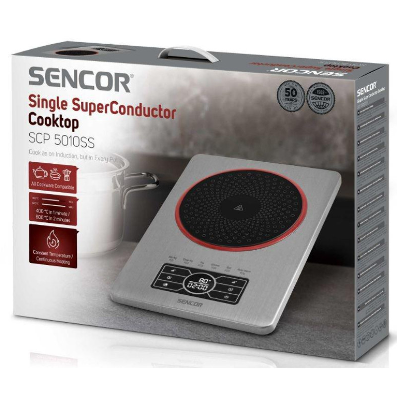 Одна конфорка SCP 5010SS SuperConductor пропонує багато переваг перед своїми конкурентами завдяки використаній технології керамічного нагрівального елемента. Завдяки їм конфорка може похвалитися дуже низькою висотою, висота самого корпусу конфорки всього 2,5 см. Навіть з ніжками він поміщається на висоту 3 см.