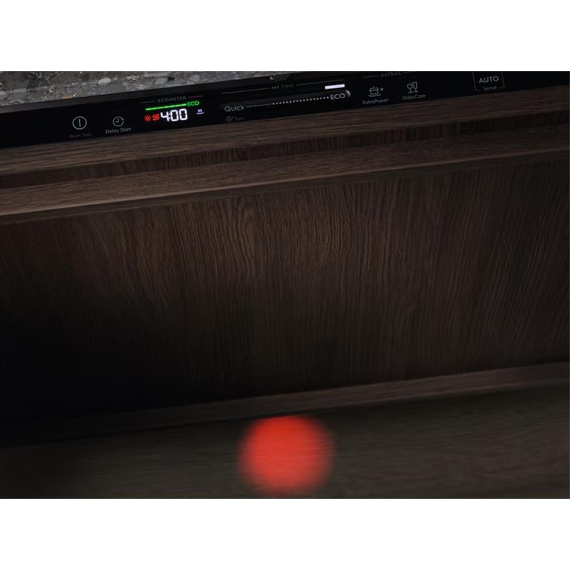 Система підсвічування Beam on Floor зберігає тишу на вашій кухні. Замість гучного сигналу, який може бути заглушений стороннім шумом, наша посудомийна машина чітко повідомляє про процес роботи, проецюючи крапку на підлогу, - червоного кольору, коли машина працює, і зеленого, коли вона закінчила роботу.