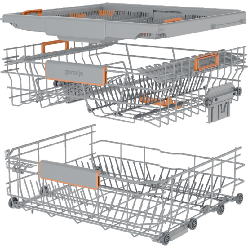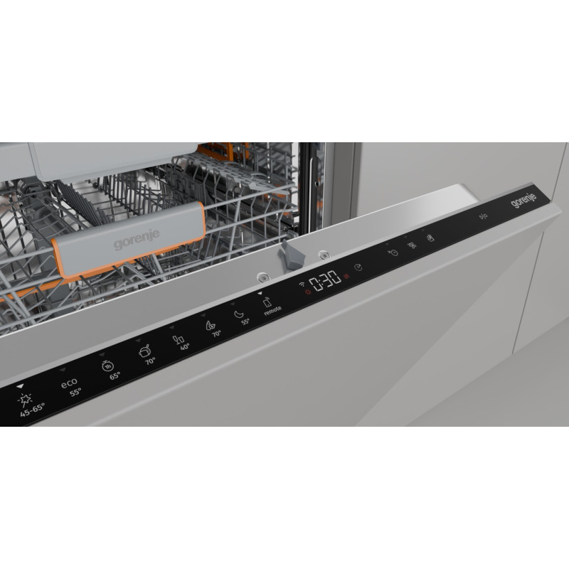 Вбудована посудомийна машина Gorenje з інверторним двигуном PowerDrive, 16 комплектів, клас A+++. Має 3 кошики для ефективного розміщення посуду, Wi-Fi керування, TouchControl і інтелектуальні програми. Автоматичне відкриття дверцят TotalDry, нічний режим, функція 3 в 1, а також можливість створення власних програм.