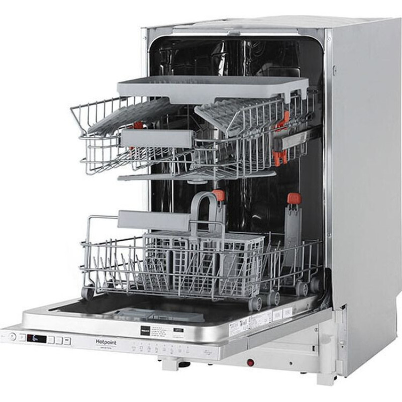 Посудомийна машина Hotpoint-Ariston HSIC3T127C Hotpoint-Ariston HSIC3T127C – це компактна побутова техніка типу, що вбудовується. Вона добре вписується в інтер'єр, так як немає яскраво виражених деталей – стиль пристрою максимально нейтральний. Має кнопкове керування з простим інтерфейсом. Модель досить економічна і у витраті ресурсів - вона споживає 9 л води за цикл, що дуже вражає.