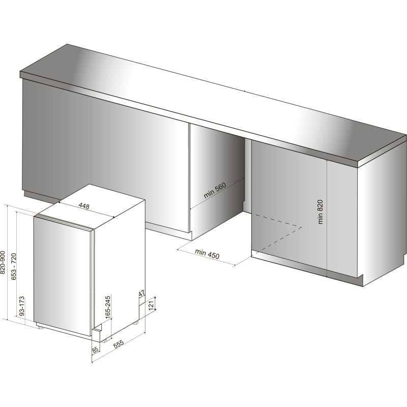 | Внутрішнє оснащення | Кількість корзин: 2 штуки Регульована верхній кошик Наявність кошика для столових приборів Кошик для столових приборів |