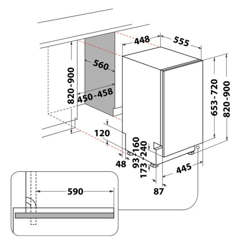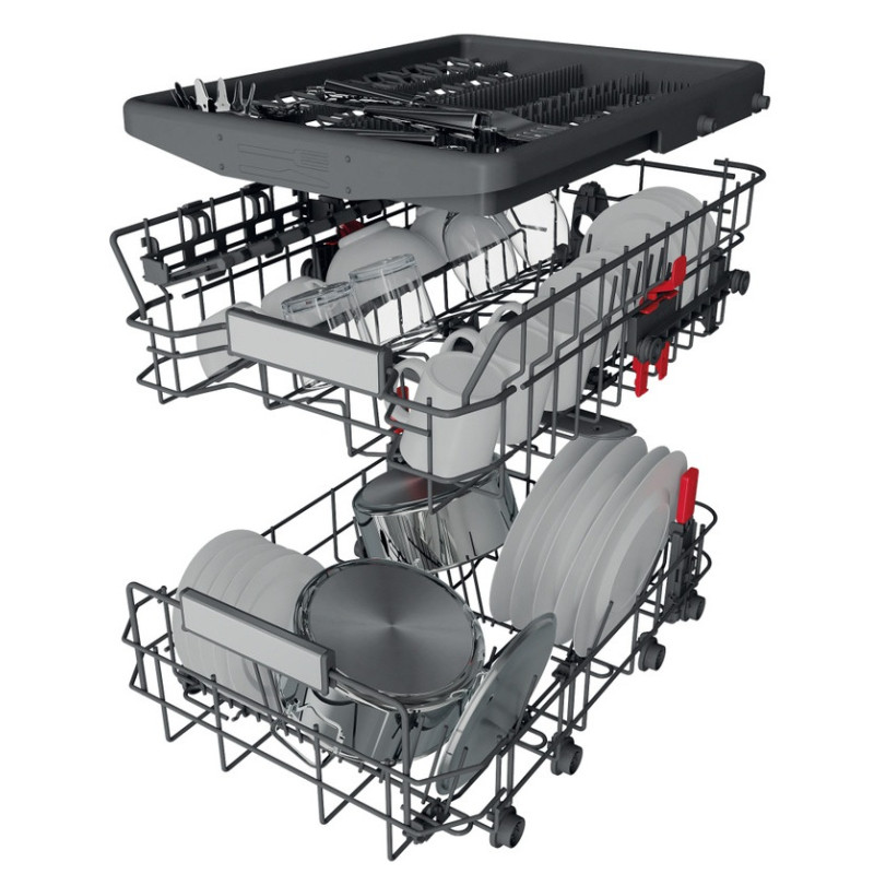 | Внутрішнє оснащення | Складні тримачі нижнього та верхнього кошиків; 3-ій кошик для столових приборів; Регулятор висоти верхнього кошику; |