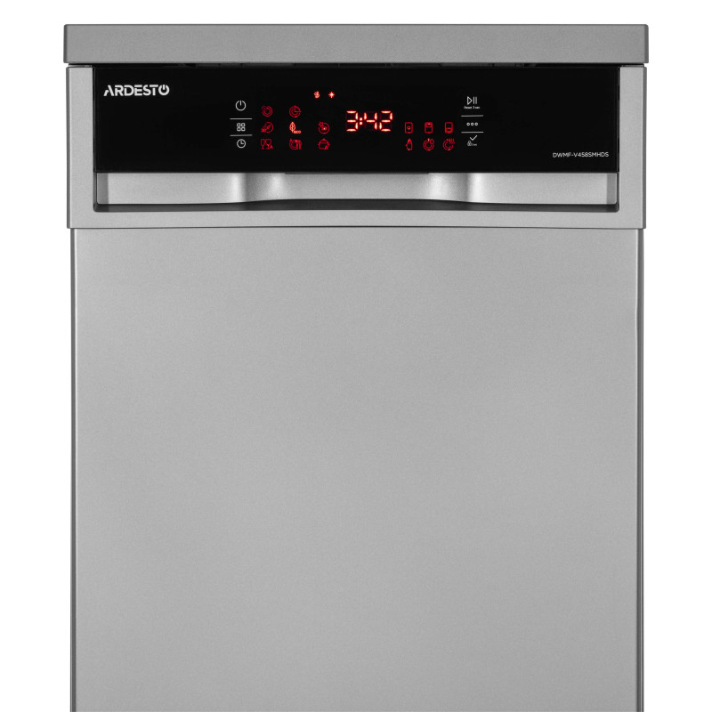Посудомийна машина підвищує якість життя і модель ARDESTO DWMF-V458SMHDS найліпший тому доказ. У ній можна вимити 10 комплектів посуду, а якість виконання буде на найвищому рівні. Пристрій вирізняється низьким споживання води та електроенергії. Ефективний внутрішній простір і компактний дизайн темно-сірого кольору роблять модель ARDESTO DWMF-V458SMHDS бажаною на кожній сучасній кухні.
