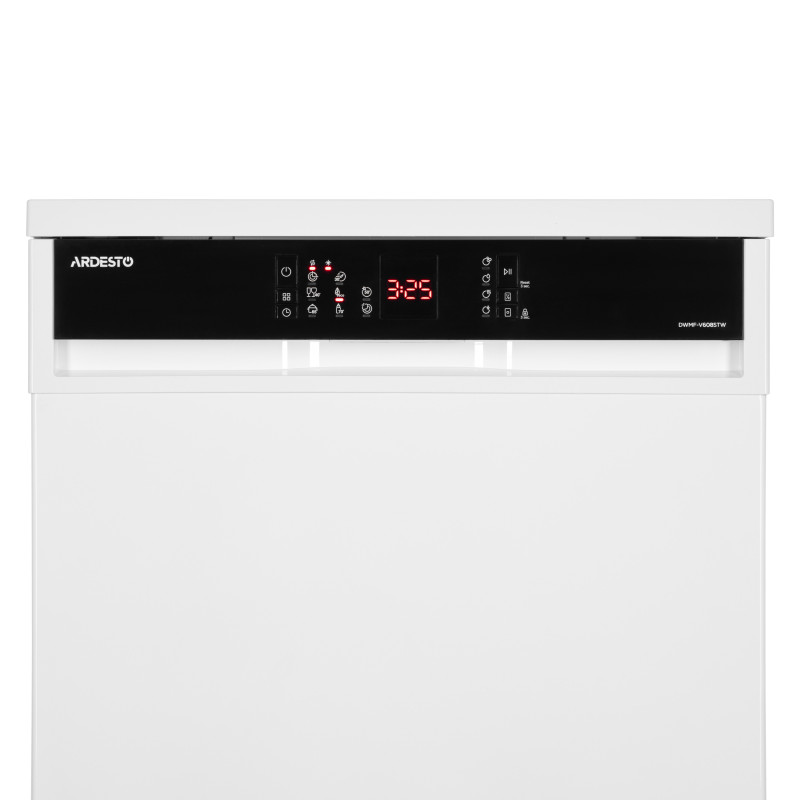 Окремостояча посудомийна машина ARDESTO DWMF-V608STW завширшки 60 см є економним пристроєм, оснащена 8 програмами та 4 температурними режимами. Пристрій легко впорається з 12 комплектами посуду. Керування посудомийною машиною з mini-LED-дисплеєм електронне й інтуїтивно зрозуміле. Передбачено захист від переливання та протікання та можливість блокування панелі керування. Наявний індикатор мийного засобу, солі, циклу прання, завершення прання. Клас енергоефективності пристрою на рівні А++.