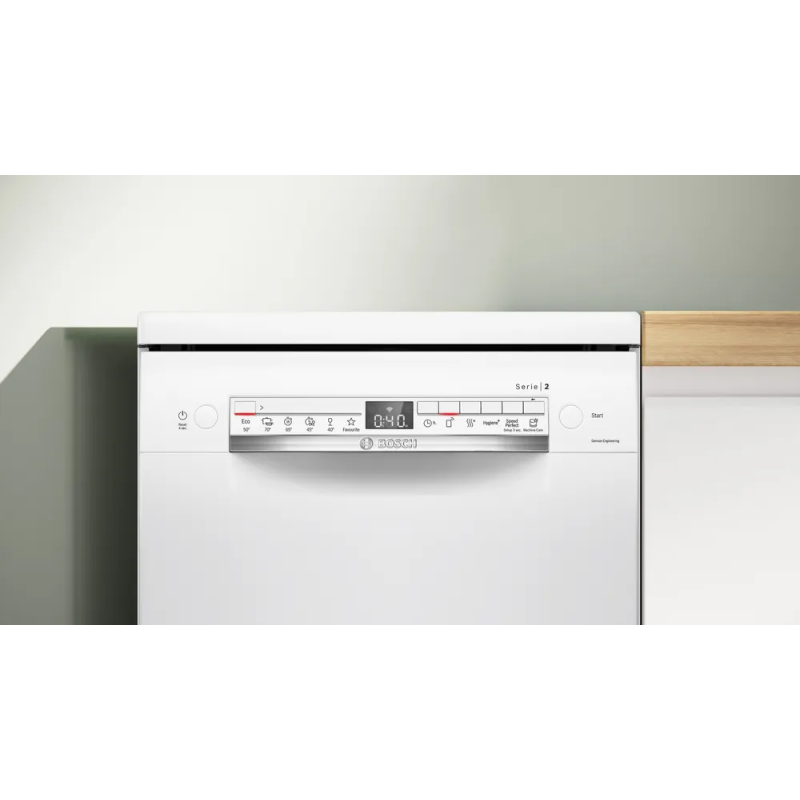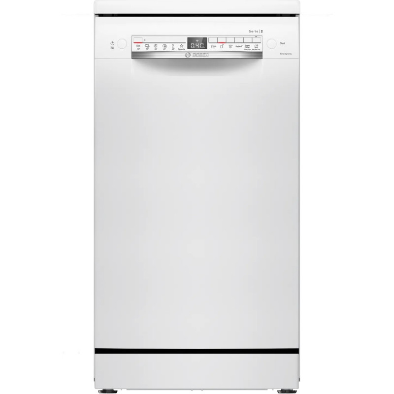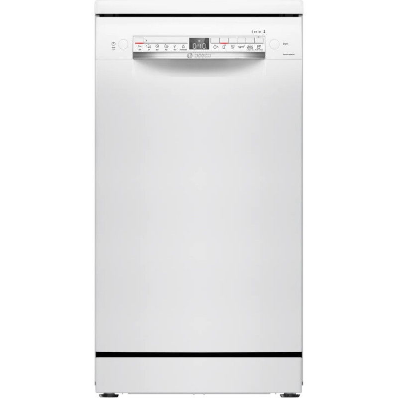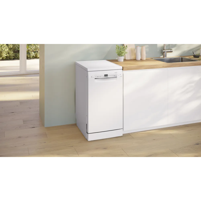 Bosch SPS2IKW55K — вузька посудомийна машина з підтримкою Wi-Fi та застосунку Home Connect, яка забезпечує ідеальну сушку навіть пластикового посуду, тишу в роботі та інтелектуальний вибір програм. Ідеальне рішення для компактних кухонь, що поєднує інновації Bosch із комфортом повсякденного використання. Завдяки сучасним функціям, таким як ExtraDry, Easy Start і SpeedPerfect, вона легко адаптується до ваших щоденних потреб.
