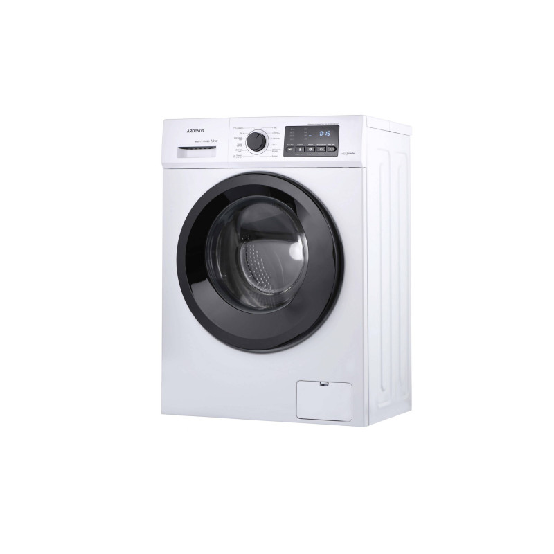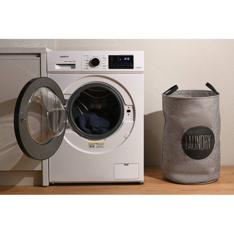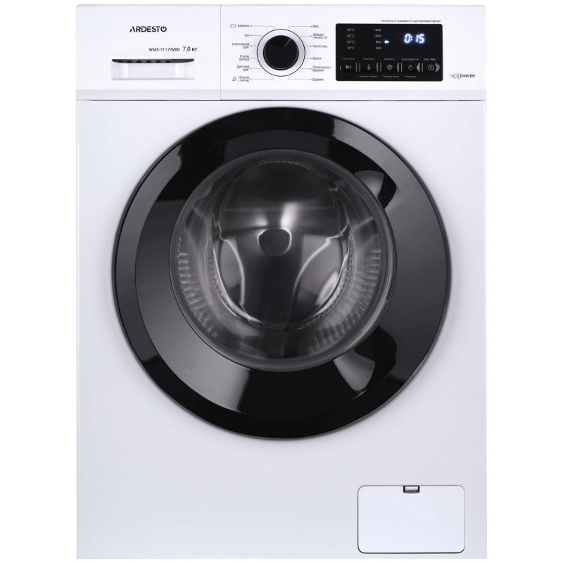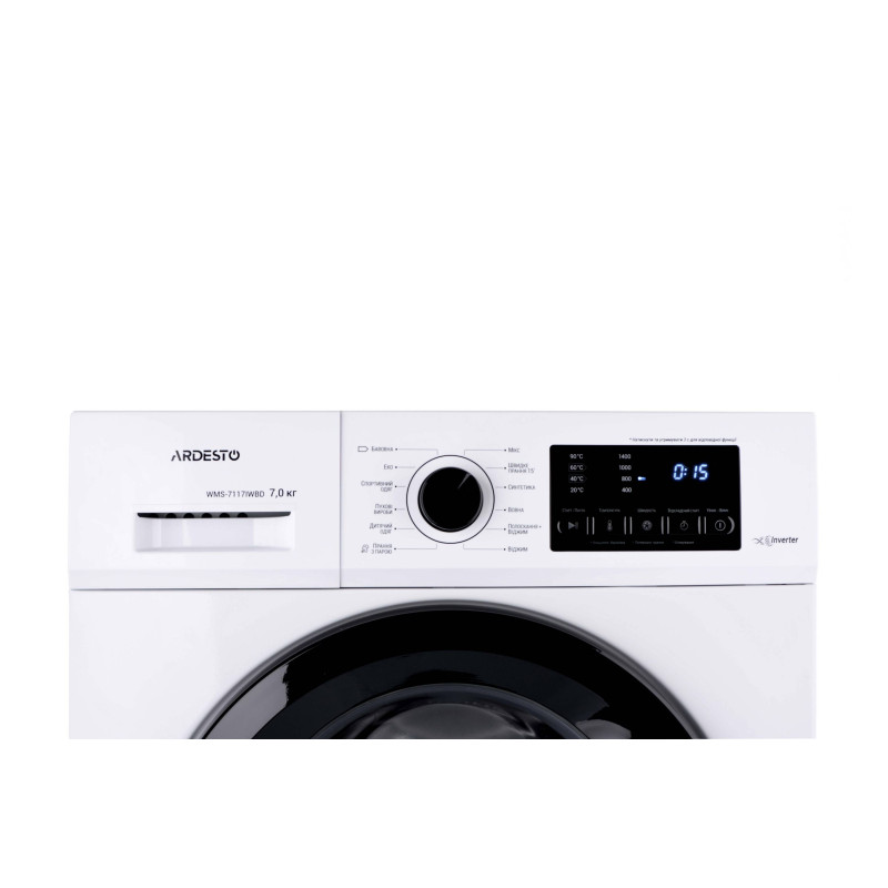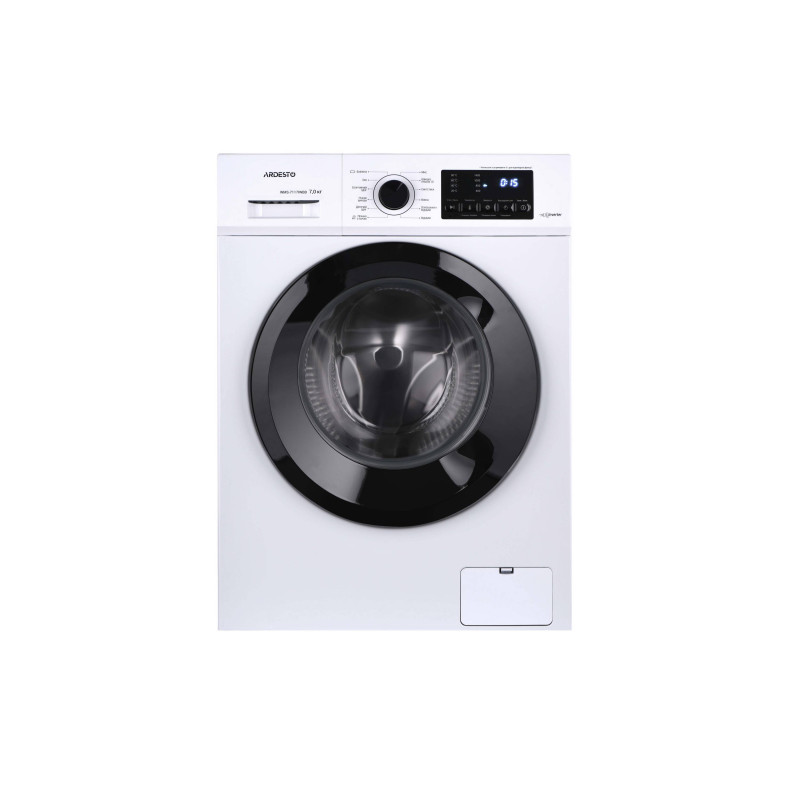 Автоматична пральна машина в корпусі білого кольору з фронтальним завантаженням. Пристрій може випрати та віджати 7 кг білизни. Пральна машина оснащена тихим і потужним інверторним двигуном BLDC. Максимальна швидкість обертання барабана – 1 400 об/хв., максимальна потужність – 1 750 Вт. Клас енергоефективності А+++, клас водостійкості ІРХ4, клас захисту I.