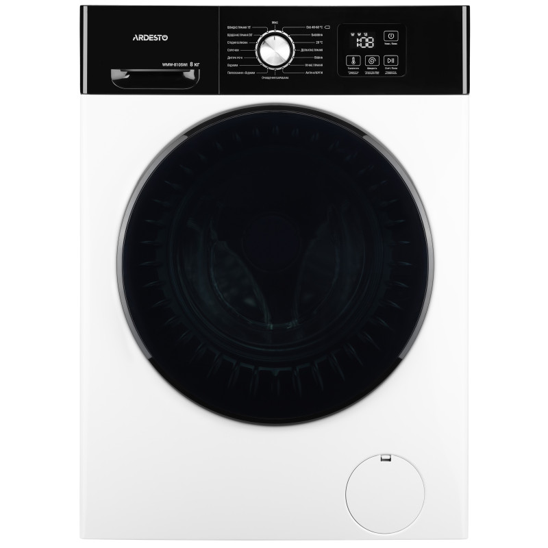 Фронтальна пральна машина ARDESTO Black Mars з інверторним двигуном BLDC вміщує 8 кг білизни і працює зі швидкістю до 1 200 об/хв. Модель вирізняється енергоефективністю класу А+++ і низьким рівнем шуму – 62 дБ під час прання і 75 дБ за віджимання. Передбачено 16 програм, з-поміж яких «Еко 40–60 °C», «Бавовна», «Делікатне прання», «Речі дітей», «Вовна», «Ковдра», «Джинси» і «Швидке прання 15'». Цифровий дисплей, функції відкладеного старту, додавання білизни під час циклу та блокування панелі керування забезпечують комфорт і контроль усіх процесів.