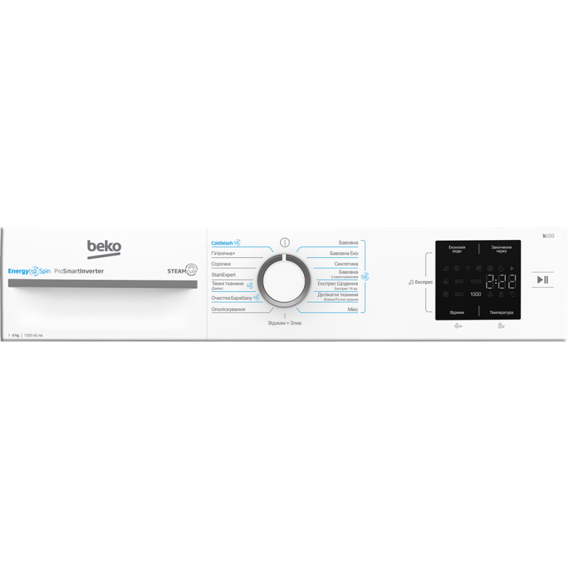 | Програми прання | Стандартна/Бавовна Cotton Eco Синтетичні речі Cottons with Prewash Експрес Щоденна / Експрес 14 хв Delicates/Wool/HandWash Змішана (Щоденна) Віджим + Злив Ополіскування Самоочистка Темні речі / Джинси StainExpert™ Сорочки H |