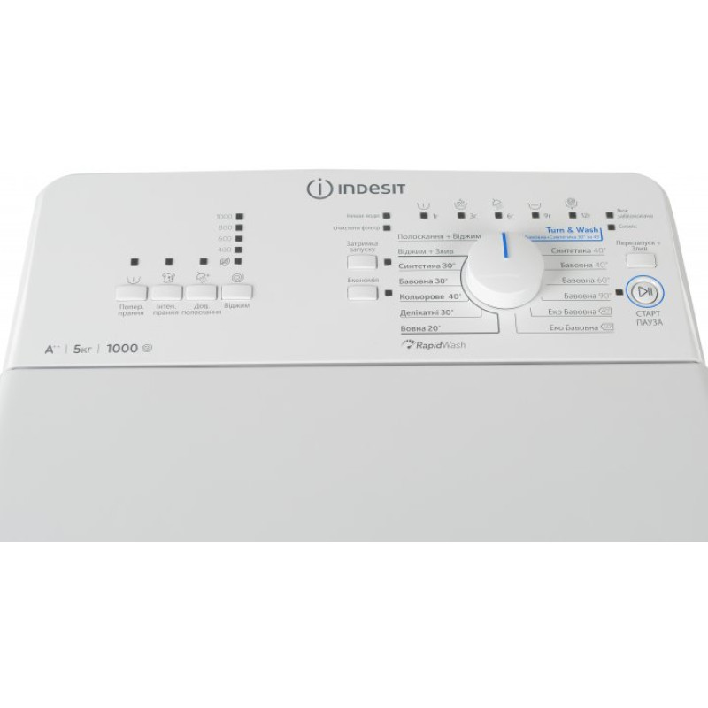 | Програми прання | Бавовна Прання синтетичних виробів Прання делікатних виробів Прання вовни Прання Turn & Wash Прискорене прання бавовна 30°C Прискорене прання синтетика 30°C Прання кольорових тканин Полоскання + віджим Віджим + злив |
