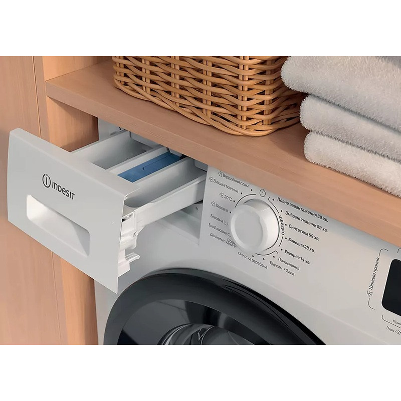 | Програми прання | Бавовна; Еко Бавовна; Змішані тканини; Вовна; 20°C; Бавовна з попереднім пранням; Бавовна 59 хв; Синтетичні 59 хв; Змішані кольорові 59 хв; Бавовна 28 хв (швидка); Експрес 14 хв; Очистка барабана |