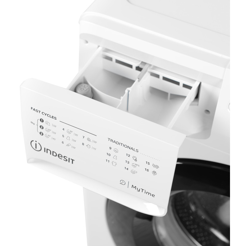 Нова пральна машина Indesit пропонує максимальну гнучкість у використанні завдяки набору швидких програм. З трьома циклами повного завантаження (змішане, 60°С бавовна та 40°С бавовна) ви отримаєте ідеально чистий одяг лише за одну годину.