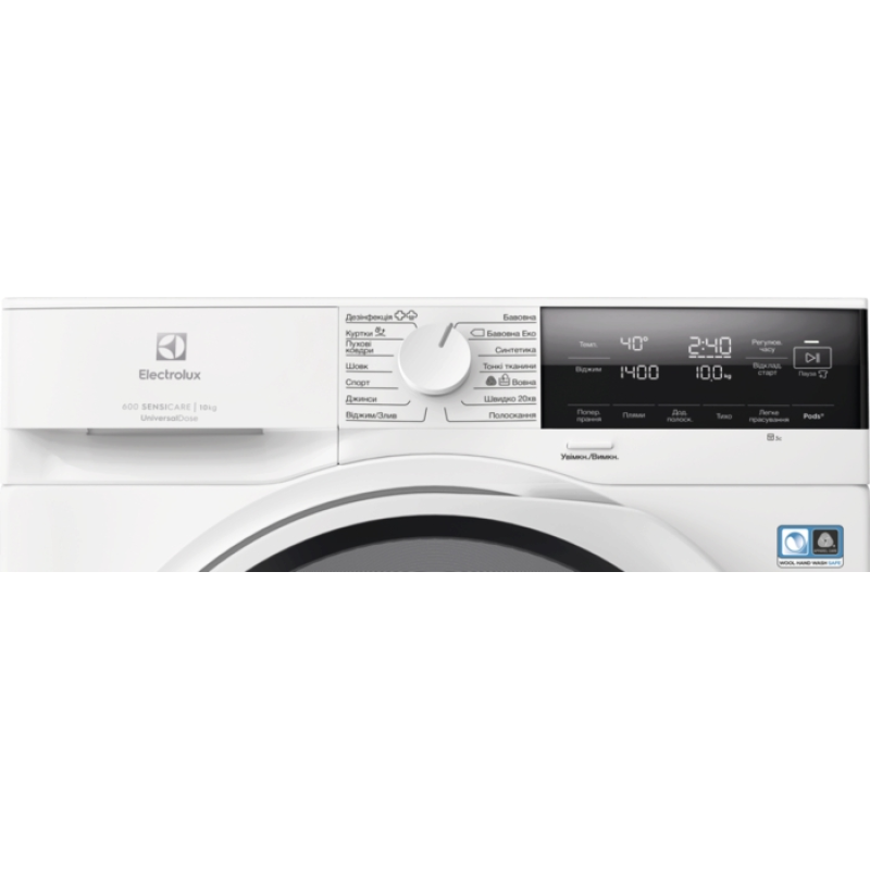 Пральна машина Electrolux фронтальна, 10кг, 1400, A, 66см, дисплей, пара, інвертор, universaldose, білий