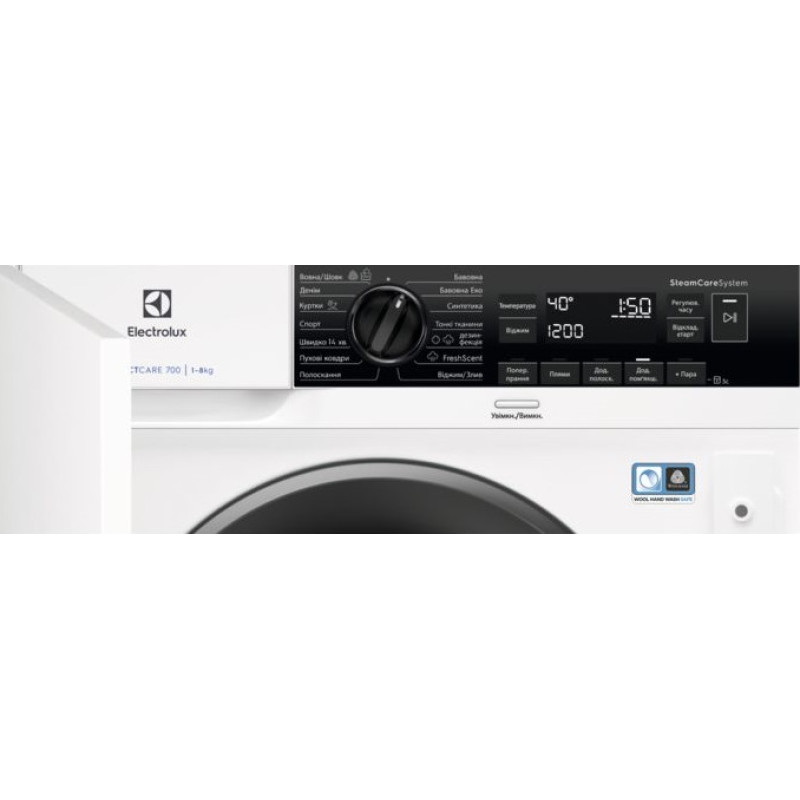 Пральна машина Electrolux вбудована фронтальна, 8кг, 1400, B, 55см, дисплей, пара, інвертор, білий
