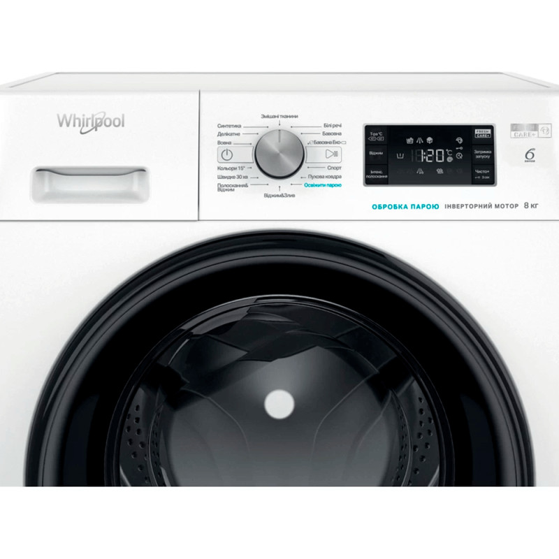 Повногабаритна пральна машина Whirlpool FFB 8248 BV UA з фронтальним завантаженням - 8 кг . Клас енергоспоживання A +++. Швидкий і енергоефективний віджимання зі швидкістю 1200 об./хв. Спеціальні програми в моделі FFB 8248 BV UA: спортивний одяг, ковдру, освіжити паром, швидка 30-хвилинна програма, Colours 15°, делікатні тканини. Додаткові функції: FRESHCARE+, відкладений старт, Clean+ для видалення плям, інтенсивне полоскання. Технологія 6TH SENSE ™ в пральній машині Whirlpool FFB 8248 BV UA автоматично адаптує налаштування відповідно до обраного циклом і програми, забезпечуючи якість прання і економію ресурсів. Інноваційний інверторний двигун SENSE Inverter забезпечує тривалу безшумну роботу.