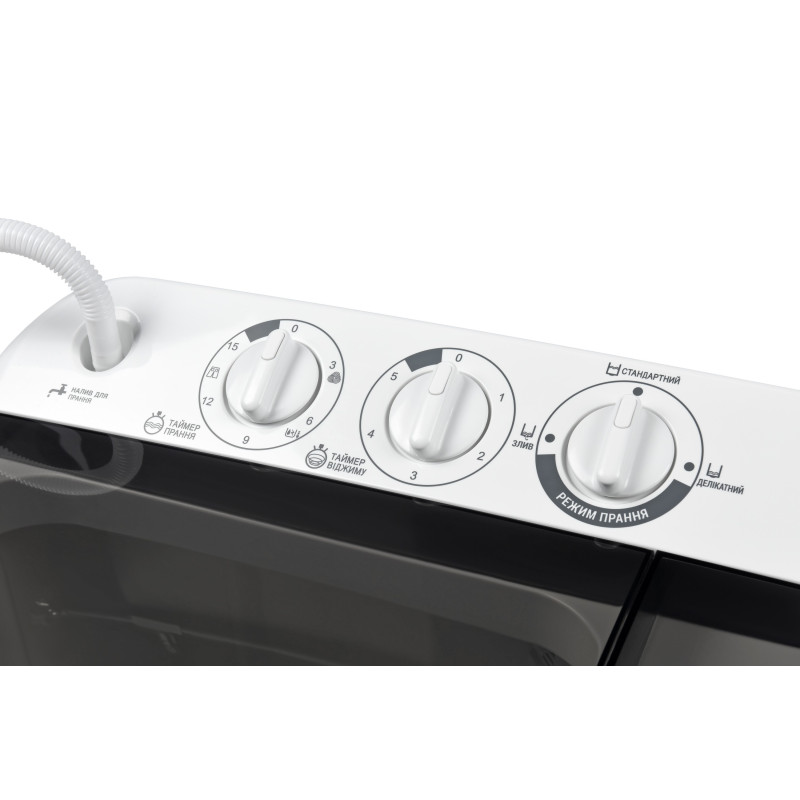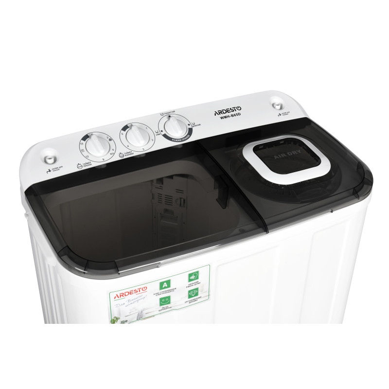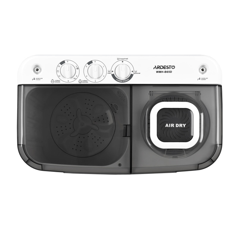 Напівавтоматична пральна машина з вертикальним завантаженням білизни та центрифугою для віджиму. Об’єм баку – 6,5 кг. Таймер прання розрахований на 15 хвилин та на 5 хвилин для віджиму. Клас енергозбереження – A. Є два режими прання – делікатне та звичайне, а також передбачена функція реверсу. Вага WMH-B65D складає 18.5 кг.
