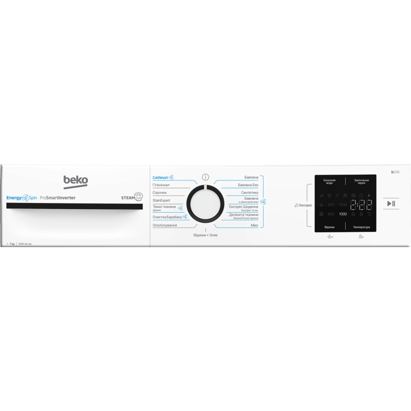 | Програми прання | Бавовна; Eкo 40-60; Синтетика; Бавовна з попереднім замочуванням; Експрес Щоденна/Експрес 14 хв; Делікатні тканини /Вовна/Ручне прання; Мікс; Віджим+Злив; Ополіскування; Очищення барабану; Темний одяг / Джинси; Stain; Сорочки; Гі |