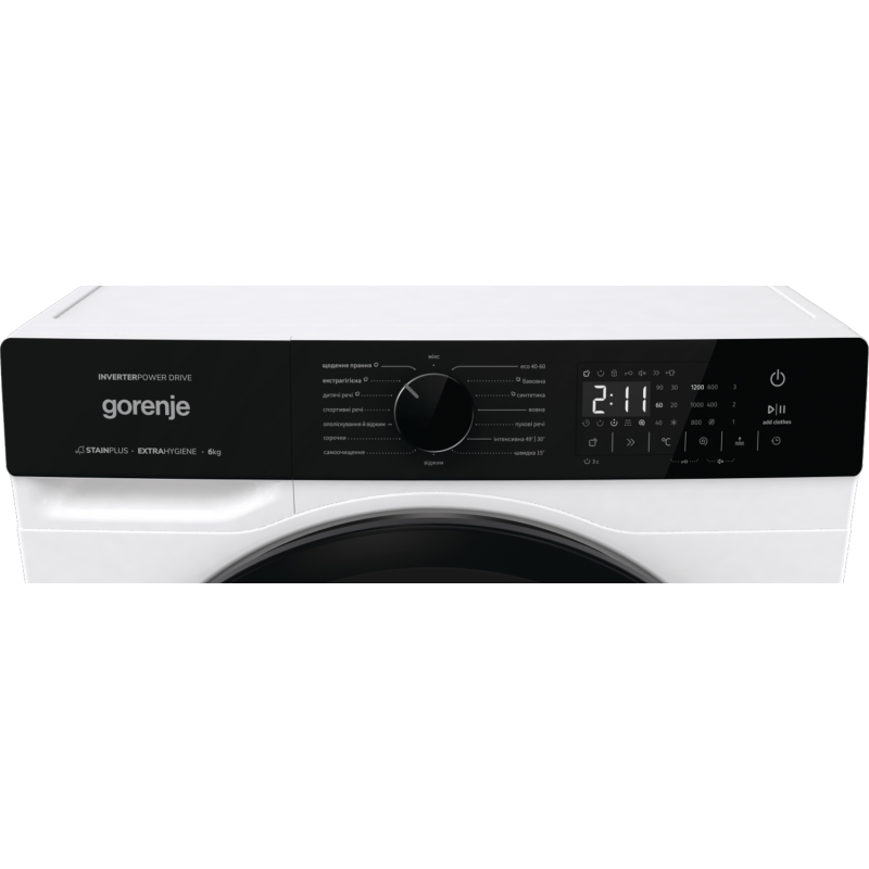 | Функції | Параметр завершення прання; Стоп насос; Додавання білизни; Додаткове полоскання; Коротка програма; Підвищення рівня води; Регулювання температури; Без віджиму; Попереднє прання; |