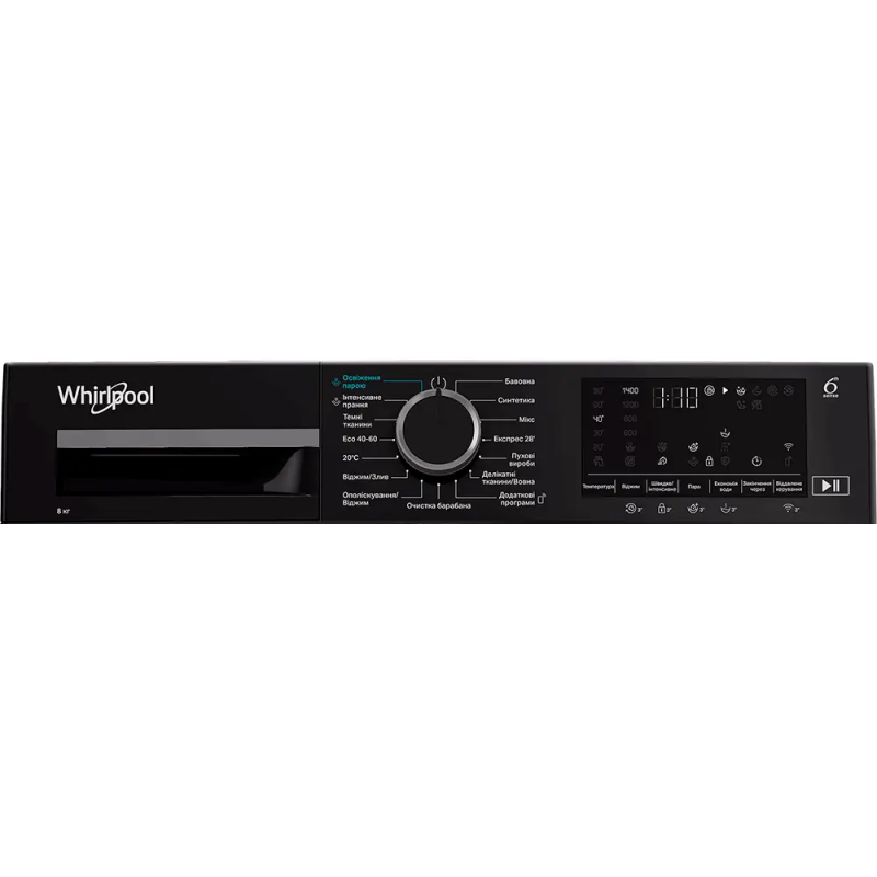 | Програми прання | Темна білизна; Бавовна; Еко Бавовна; Синтетика; Змішана білизна; Пух/перо; Освіжити пором; Полоскання та віджимання; Віджимання і злив; Делікатні тканини; Вовна; Інтенсивне прання; Бавовна 20 °; Експрес прання 28 хвилин; Додаткові програми; |