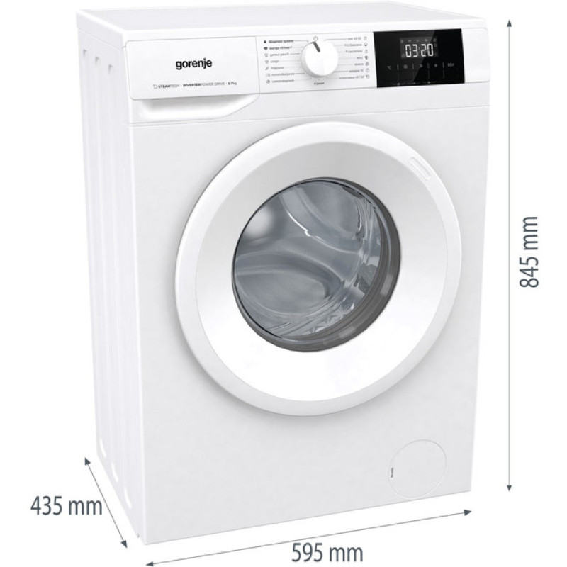 Пральна машина Gorenje WNGPI72SBS – це компактна та енергоефективна модель, яка ідеально підходить для невеликих просторів. Завдяки завантаженню 7 кг і швидкості віджиму 1200 об/хв вона забезпечує якісне очищення одягу, а технологія SteamTech зменшує складки та усуває алергени. Інверторний двигун PowerDrive гарантує тиху роботу, надійність і економічне споживання електроенергії (клас A+). Компактна глибина 43.5 см дозволяє розмістити машину навіть у невеликій ванній кімнаті, а інтуїтивний дисплей робить керування простим і зручним.