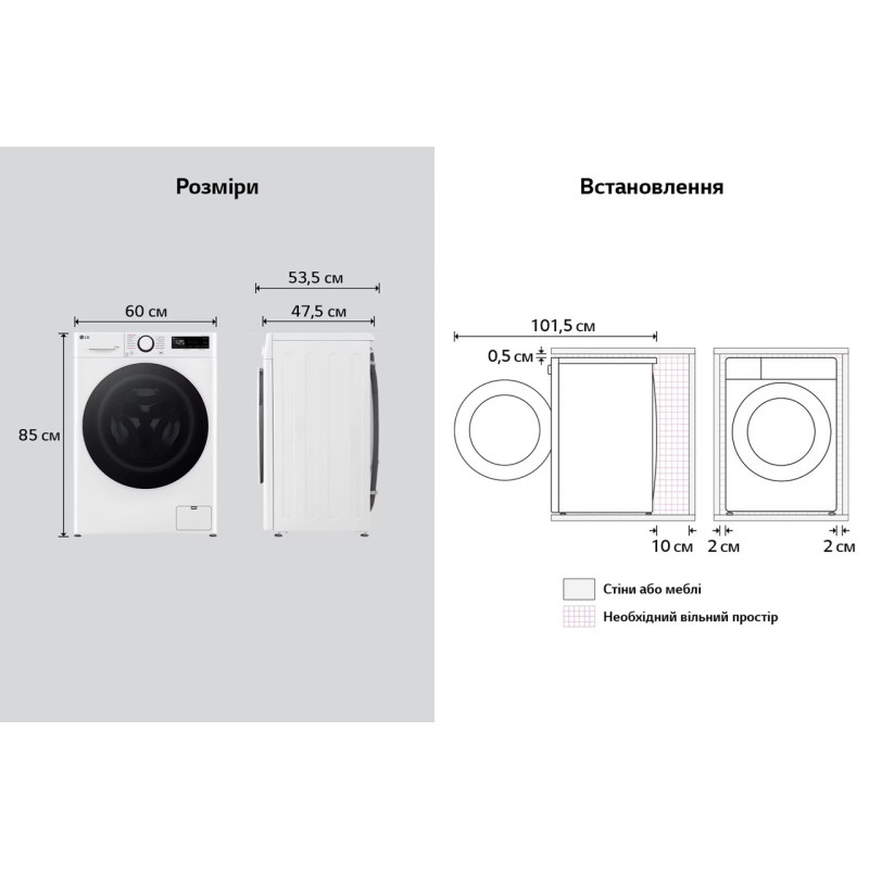 | Особливості | Технологія визначення властивостей тканини AI DD™; Інверторний двигун з прямим приводом Inverter DirectDrive; Технологія "6 рухів турботи" 6 Motion DD; Функція обробки парою Steam; Система розпилення води (швидке прання) TurboWash360˚; |