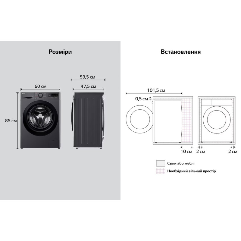 | Особливості | Технологія визначення властивостей тканини AI DD™; Інверторний двигун з прямим приводом Inverter DirectDrive; Технологія "6 рухів турботи" 6 Motion DD; Функція обробки парою Steam; Система розпилення води (швидке прання) TurboWash360˚; |